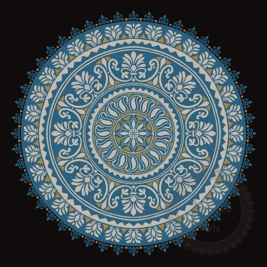 Calm explores tranquility through a mandala of soft white, soothing blue and gentle yellow – an invitation to pause and breathe. Be mindful, be grateful, be kind……
