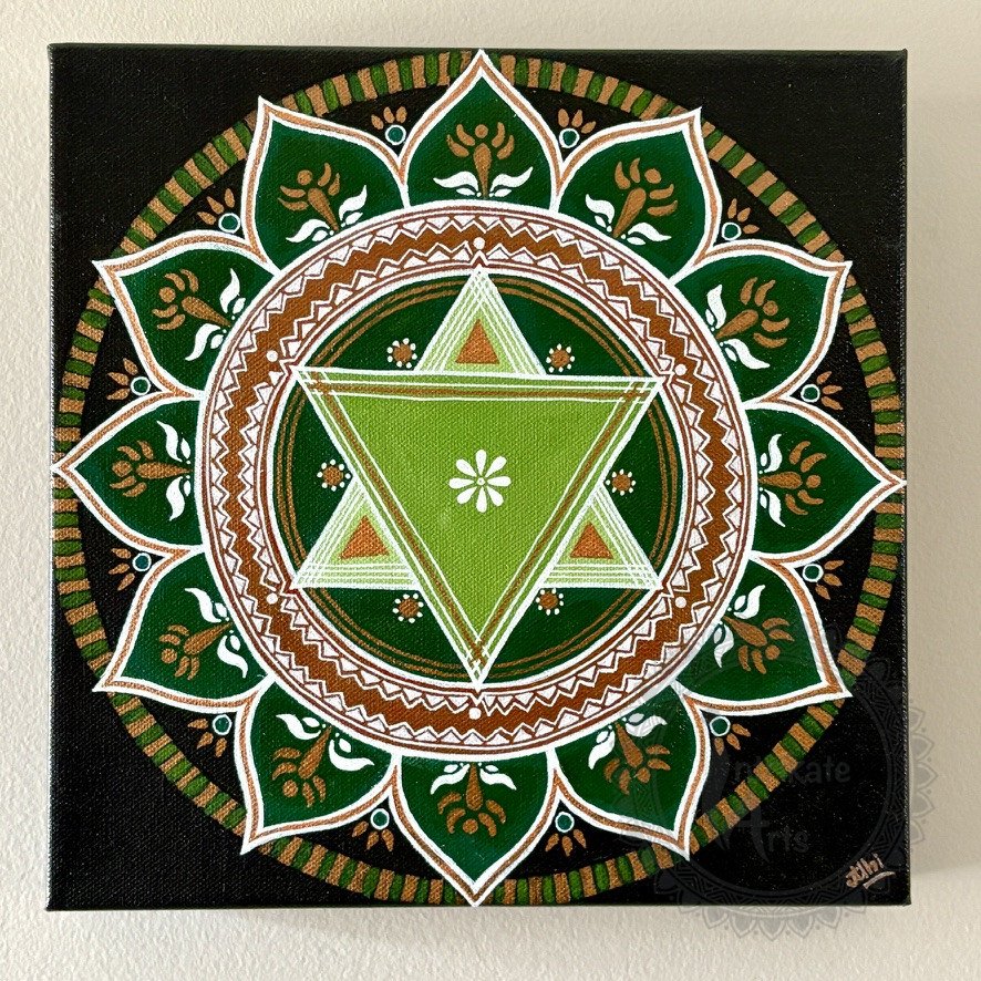 Heart mandala is based on the heart chakra. This chakra is situated close to the heart and is associated with the air element.