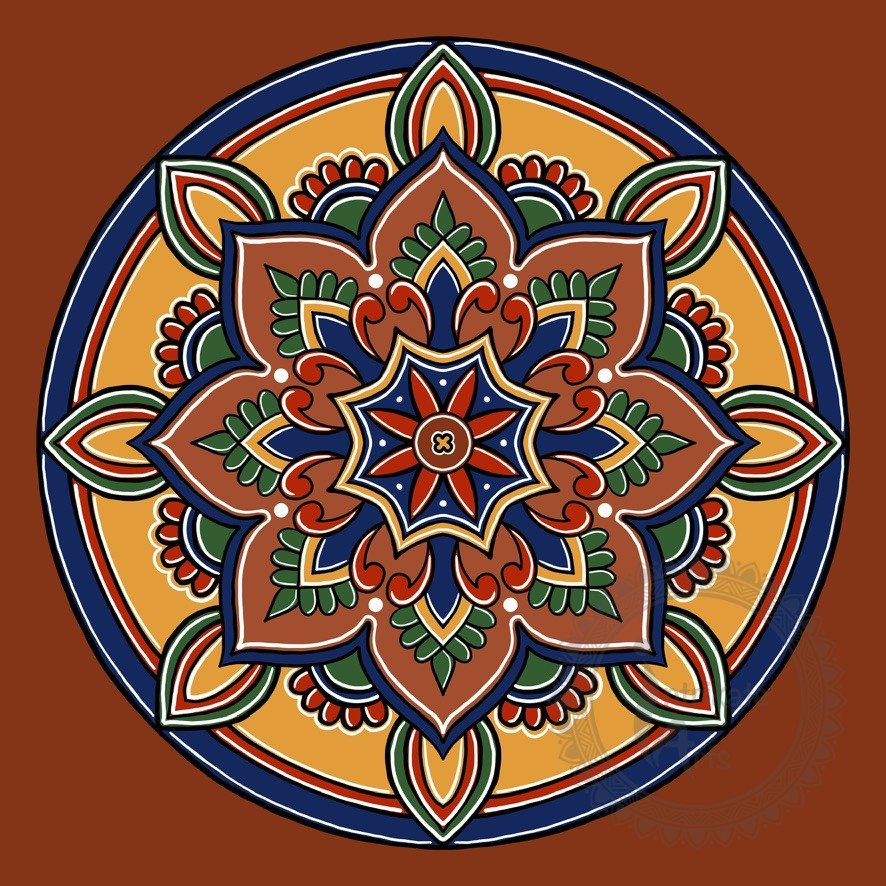 Mandala inspired by the shapes and colours of Talavera art – the vibrant, hand-painted ceramic art form, from Puebla, Mexico