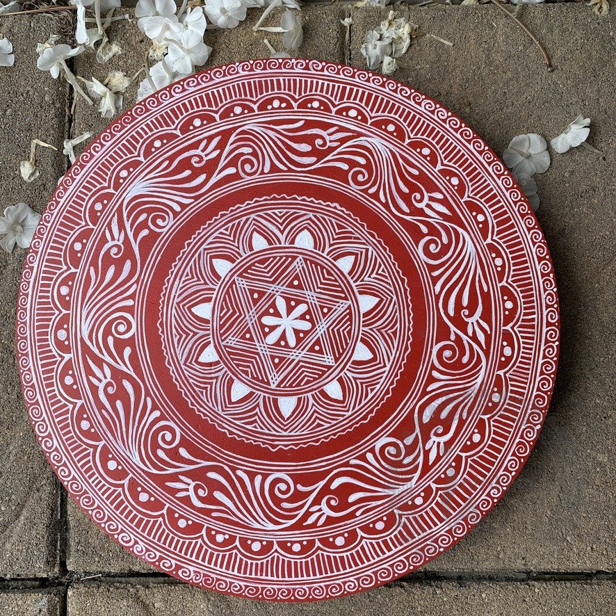 Festive décor for Diwali, Navratri, Durga Puja and all.  Traditional aipan rangoli for floor decoration.