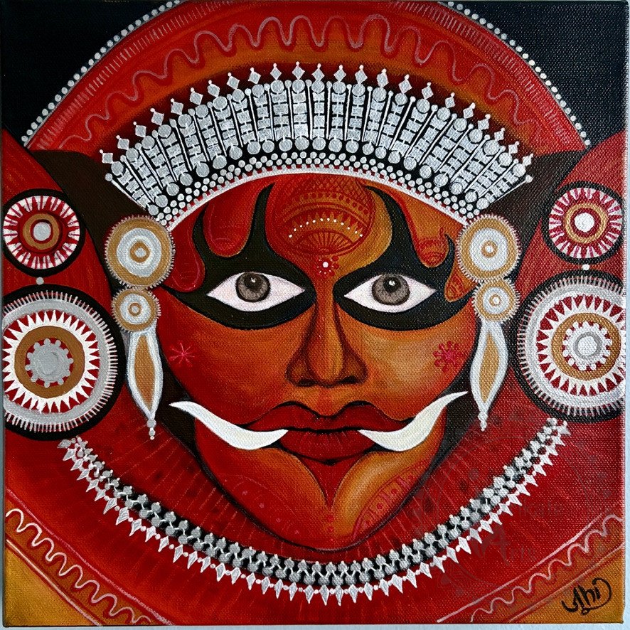 Theyyam is a ritualistic dance theatre art form, performed in the Malabar region of Kerala, India. Rooted in cultural heritage, it revolves around the worship of ancestral spirits, local deities and divine heroes. Colourful costumes, elaborate face painting and ornate headgear are unique to each character and play a crucial role in transforming the artist into the deity.